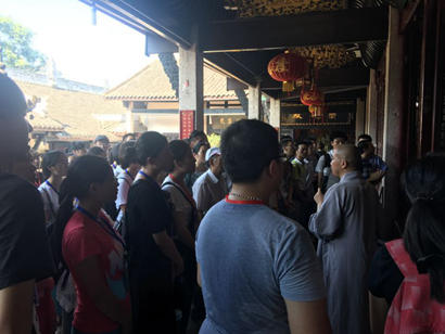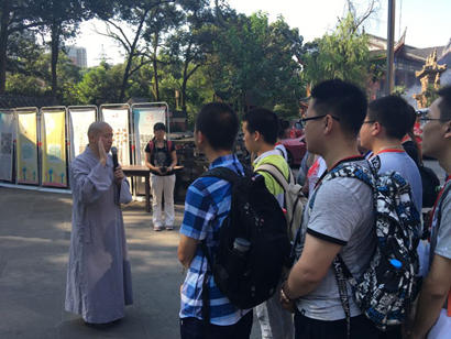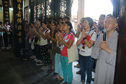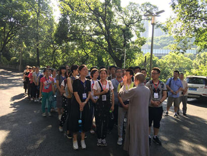 2016年7月24日上午,重庆市华岩文教基金会组织的西南政法大学辅仁国学经典讲习班“一日禅修汇华岩”公益禅修活动正式开营,重庆华岩寺监院、重庆市华岩文教基金会副理事长隆证法师主持开营仪式并带领大家参观华岩寺各个殿堂,讲解佛教基本礼仪。