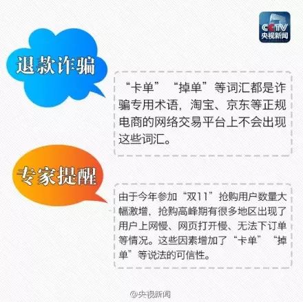 “双11”抢购高峰过后,你是不是在安心等快递?小心!说不定骗子已经盯上你了,退款诈骗、二手交易诈骗、中奖诈骗可能比快递来得还早。识别骗局,拒绝骗局,远离骗局,这6条妙招教你保护资金安全↓↓