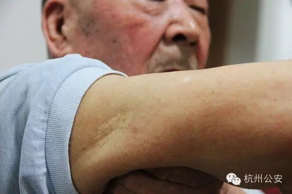 王老抬起手臂给我们看被手榴弹炸伤留下的疤痕