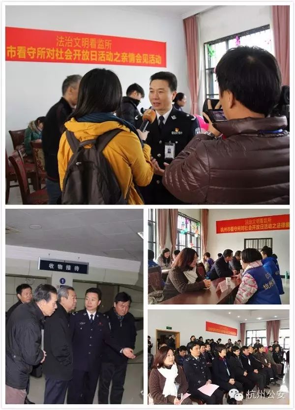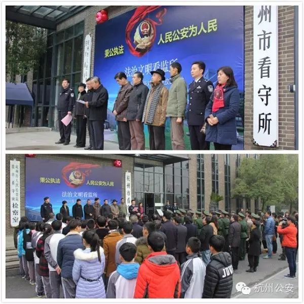 12月7日上午,杭州市看守所组织开展“法治文明看监所”集中对社会开放活动。在开幕仪式上,杭州市看守所负责人介绍此次活动旨在深入贯彻落实依法治国方略,认真落实公安部、省厅及上级监管部门关于开展“秉公执法、人民公安为人民”主题教育活动要求,展示公安监管场所平安建设、保障诉讼、保障人权新水平和新形象,主动接受社会各界监督,进一步赢取人民群众和社会各界对公安监管工作的理解、支持,确保安全文明有序。全心投入,全力保障G20峰会安保工作,做到收得进、关得下、管得好,服务配合面上打击整治,交出一份优秀成绩单,让党和人民放心。