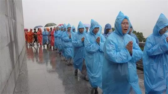 雨停后学僧恭敬三步一拜佛